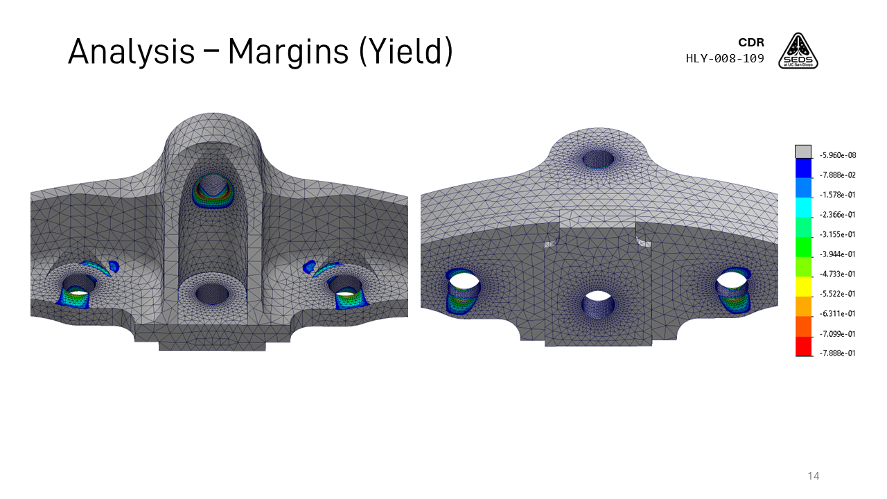 Selected slide from the critical design review (CDR) showcasing the calculated stress margins from the analysis.
