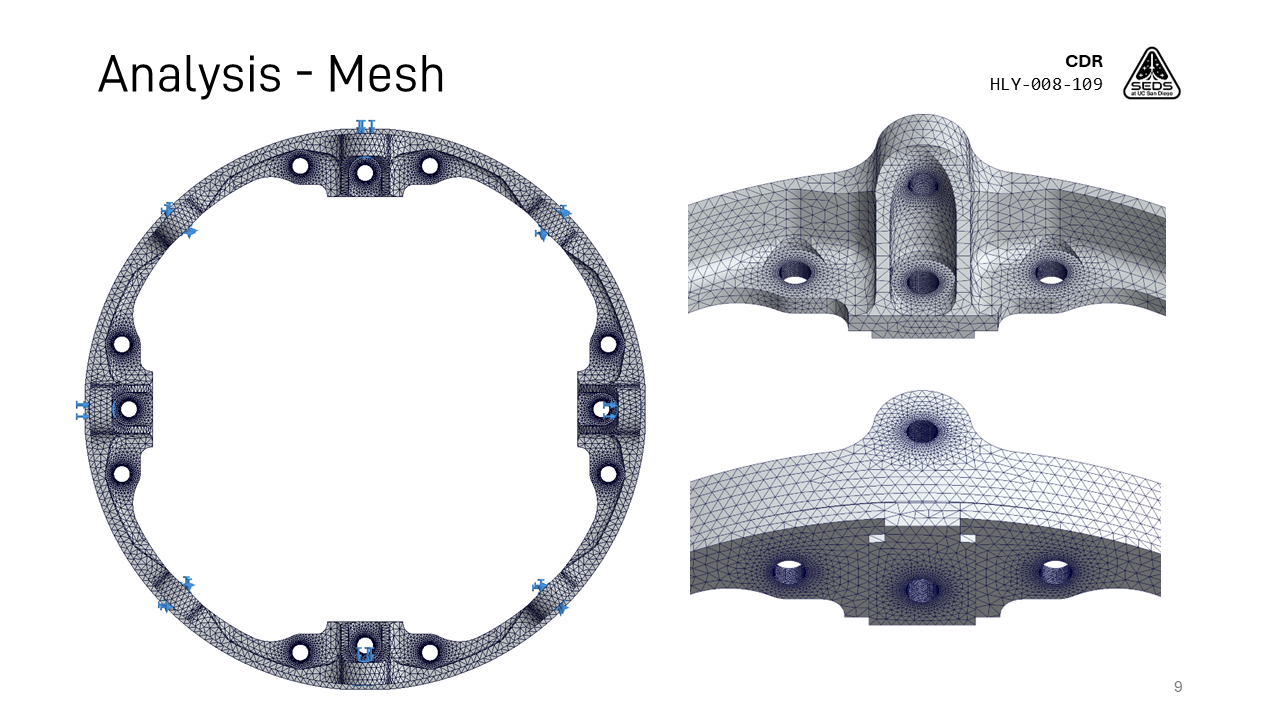 Selected slide from the critical design review (CDR) showcasing the finite element analysis setup.