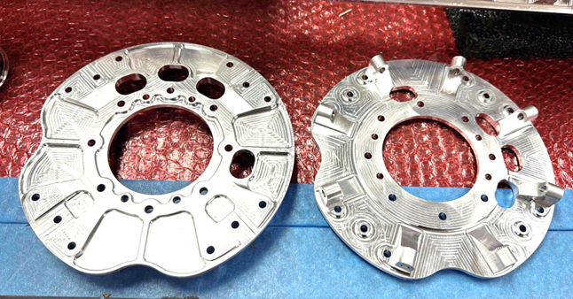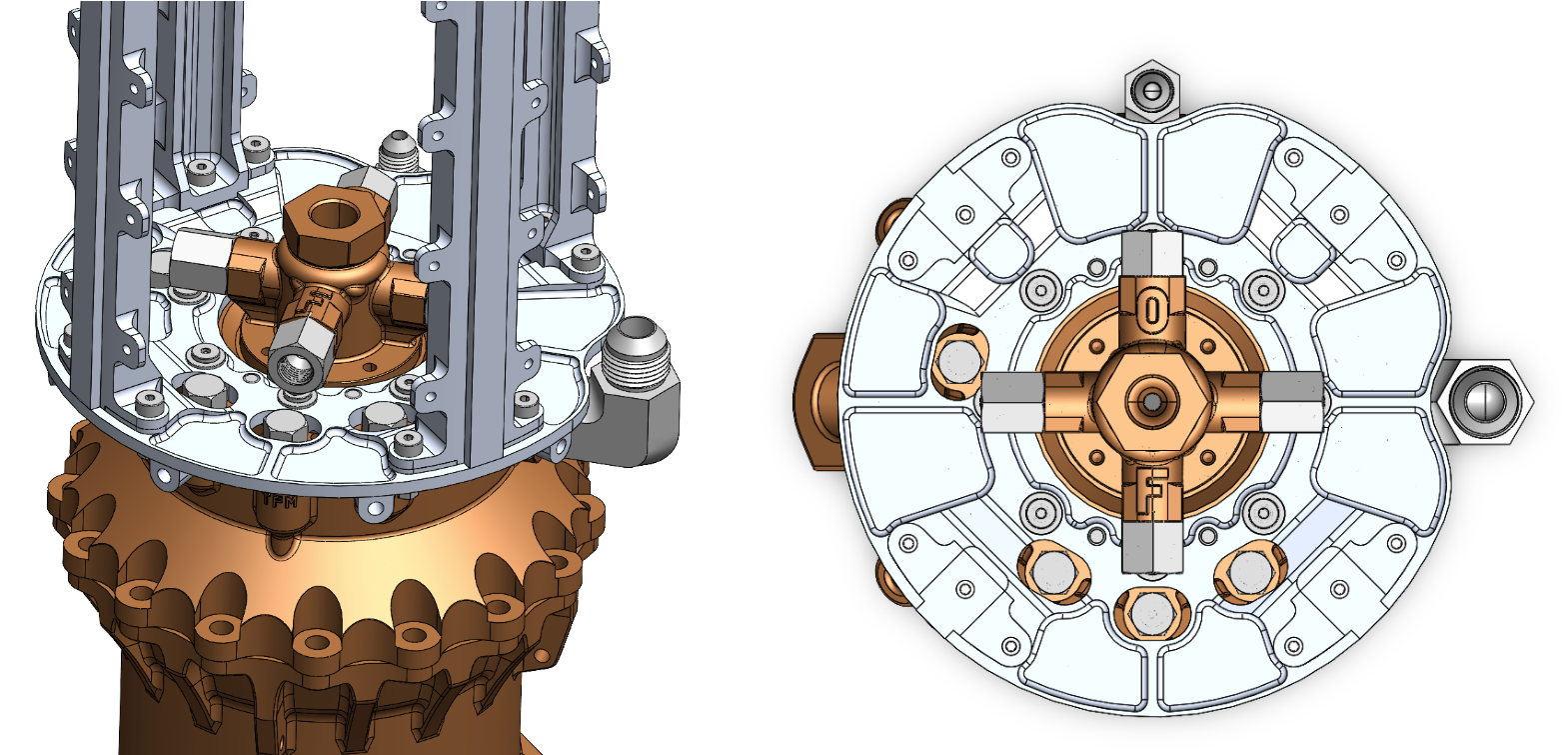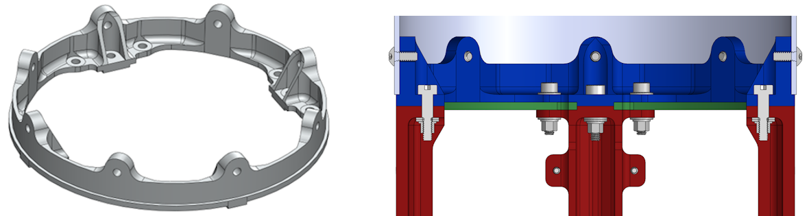 Thrust bulkhead isometric view (left) and top-down view (right).