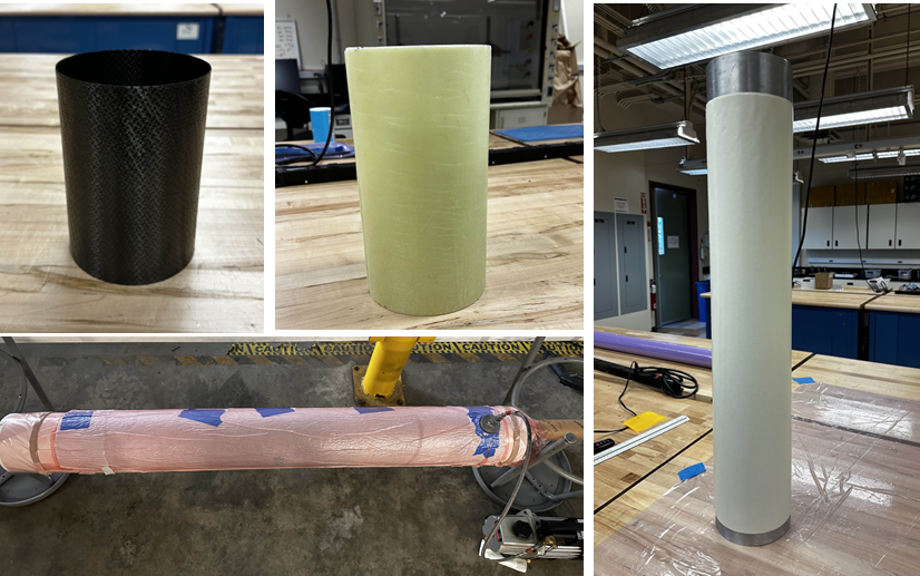 Prototype composite monocoque structures for Halya (various wet and prepreg layup techniques on a custom cylindrical mandrel).